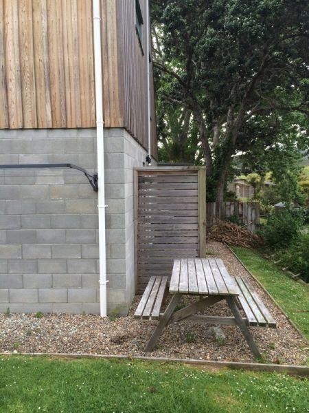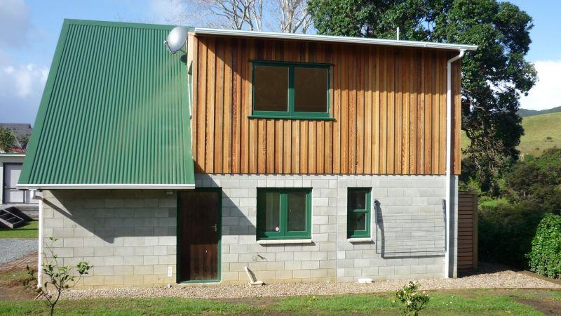 Beach bach extension is complete with new cedar cladding and large garage. A new bathroom, toilet, laundry, internal stairs, large living area and bedroom have been added.