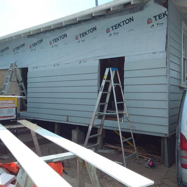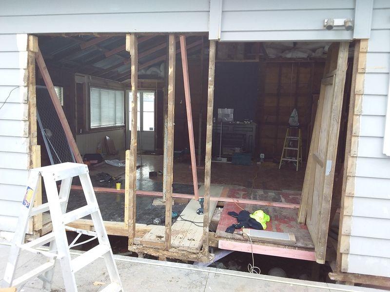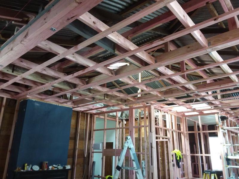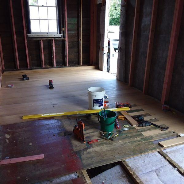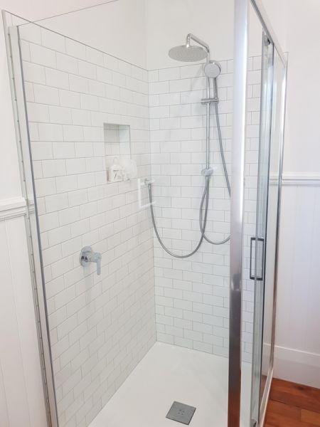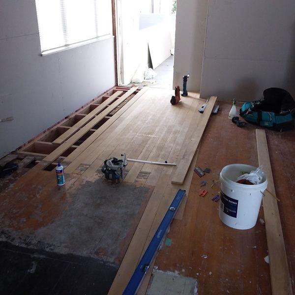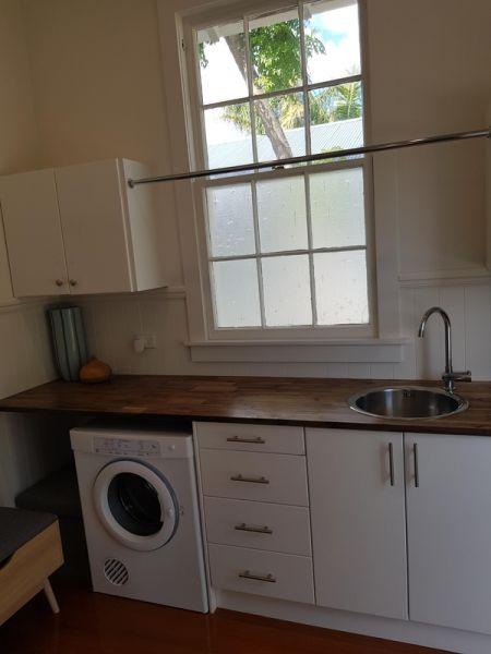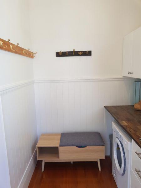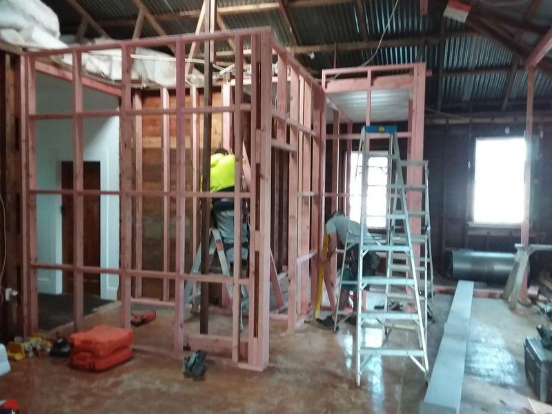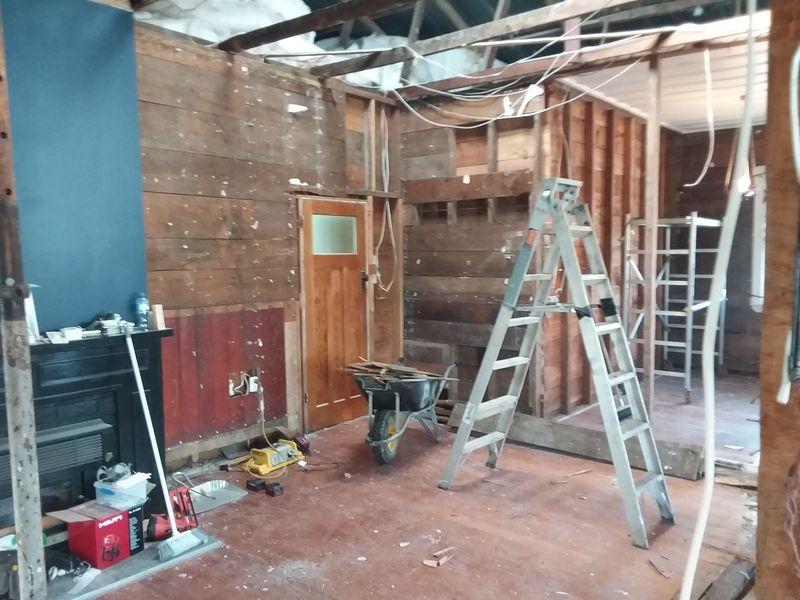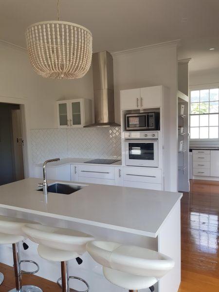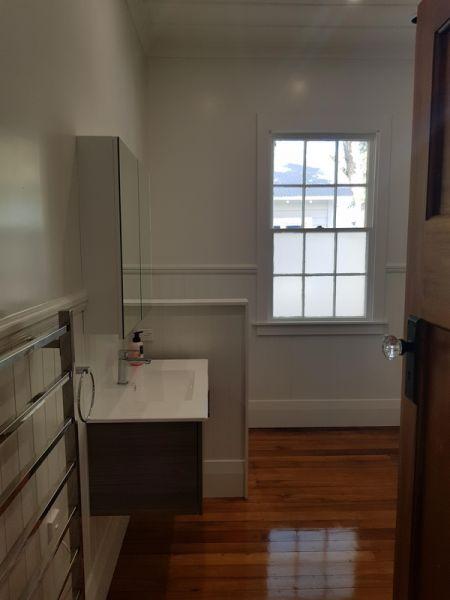 1912 Bungalow renovation – remove walls from existing living areas to create open plan lounge, dining and kitchen. Renovation also included new bathroom, laundry, aluminium joinery to living areas and new deck.