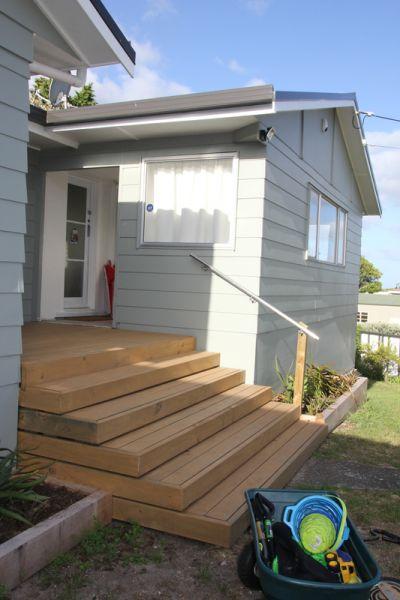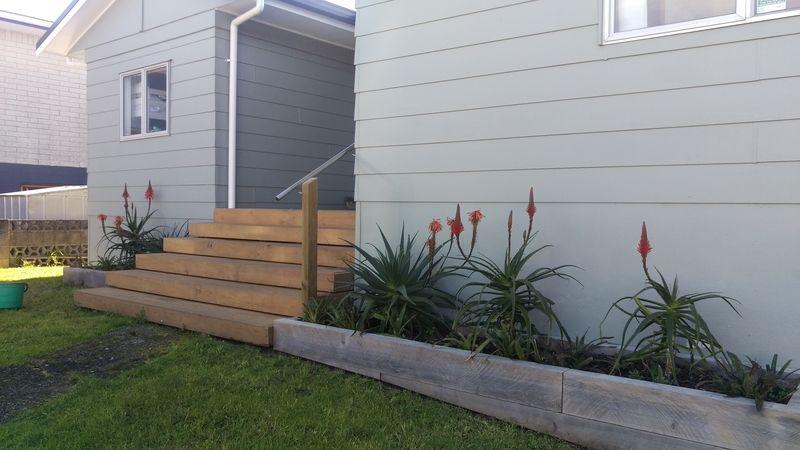 Landing and Stairs2025-11-28T15:00:44+13:00 Project Description New stained front deck with stainless steel handrail. Timber Wide Entry Steps with timber sleeper garden beds Timber Wide Entry Steps Timber Wide Entry Steps with Stainless steel handrail 3 Project Details Categories: Decks Share This Story, Choose Your Platform! FacebookXRedditLinkedInWhatsAppTelegramTumblrPinterestVkXingEmail Related Projects